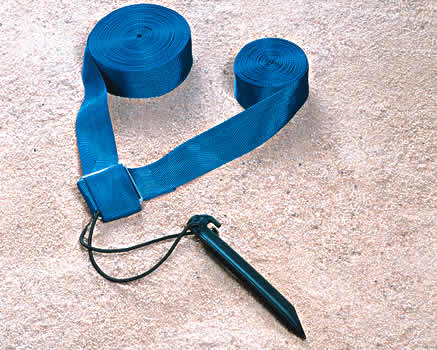 Complete with 4 plastic ground anchors 23 cm long and bungee tension lines.