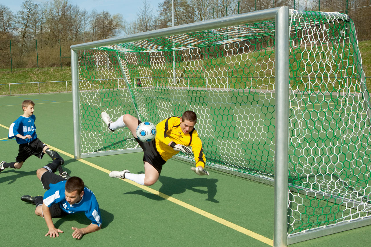 Goal nets in 3.5 mm dia. high tenacity Polypropylene, hexagonal mesh, chequered pattern